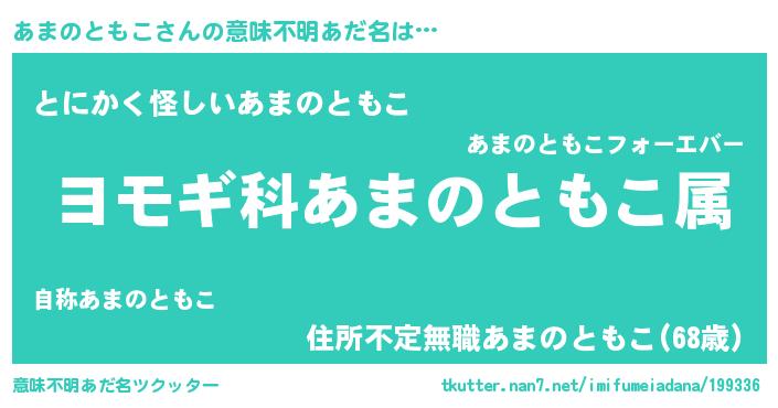 | 男性向けラノベタイトル風あだ名 | 『あまのともこに滅ぼされるだけの簡単なお仕事です』 |