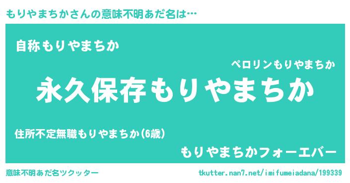 | 胡散臭い通販商品みたいなあだ名 | 『来世でも幸せになれる健康食品…その名も「もりやまちか」』 |