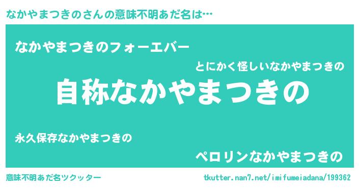 | 男性向けラノベタイトル風あだ名 | 『Re:なかやまつきのから始める異世界生活』 |
