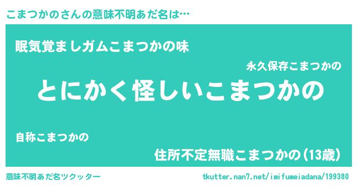 | 胡散臭い通販商品みたいなあだ名 | 『信頼と実績のサプリメント…その名も「こまつかの」』 |