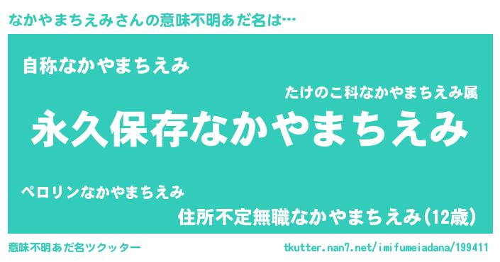 | ヘコむあだ名 | 『なかやまちえみ(震え声)』『なかにー』 |