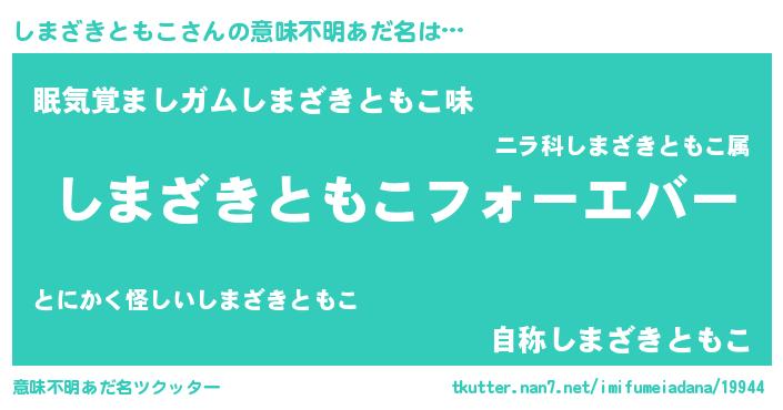 | 男性向けラノベタイトル風あだ名 | 『やはりしまざきともこの青春ラブコメはまちがっている 』 |