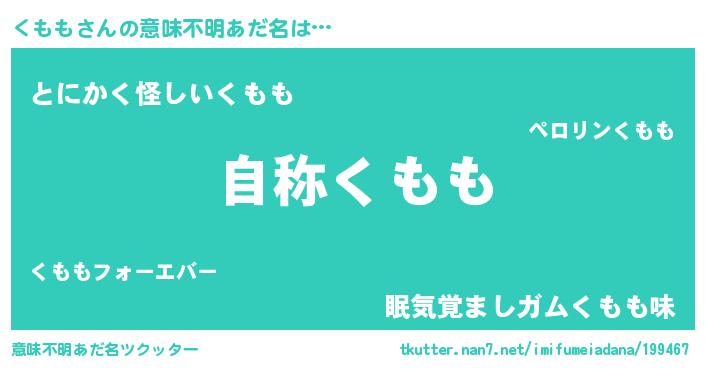 | 胡散臭い通販商品みたいなあだ名 | 『芸能人もオススメするアガリクス…その名も「くもも」』 |
