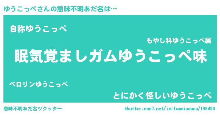 | 男性向けラノベタイトル風あだ名 | 『ノーゲーム・ノーユウコッペ』 |