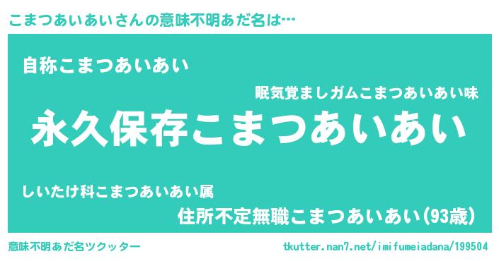 | 女子向けラノベタイトル風あだ名 | 『異世界で失敗しない100のこまつあいあい』 |