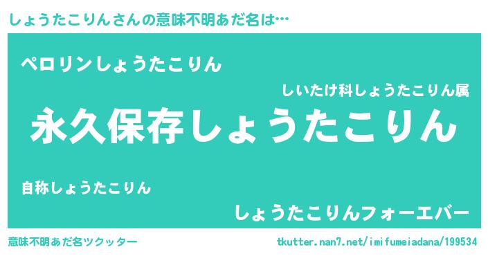 | 男性向けラノベタイトル風あだ名 | 『しょうたこりんという概念が存在しない退屈な世界 』 |