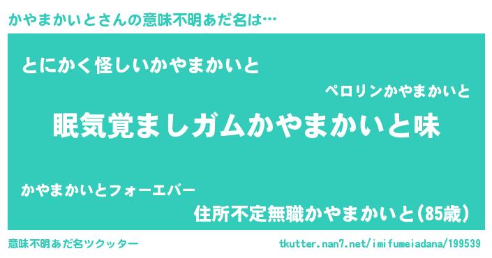 | 欧米人風あだ名 | 『アンジェラ・かやまかいと』 |