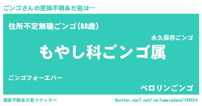 | 男性向けラノベタイトル風あだ名 | 『転生したらごンゴだった件』 |