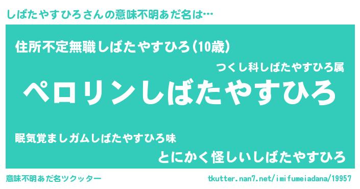 | 男性向けラノベタイトル風あだ名 | 『しばたやすひろの憂鬱』 |