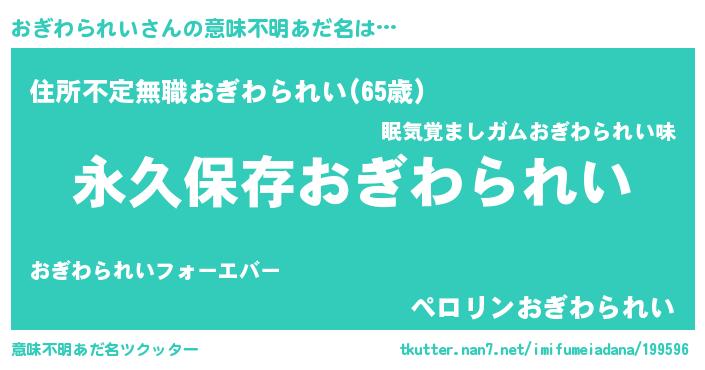 | ポケモン風あだ名 | 『オギゴンZ』『ゼニオギ』『オーギイ』 |