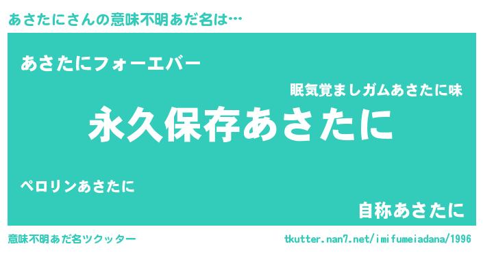 | ヘコむあだ名 | 『あさたに(笑)』『豆乳』『あさにー』 |