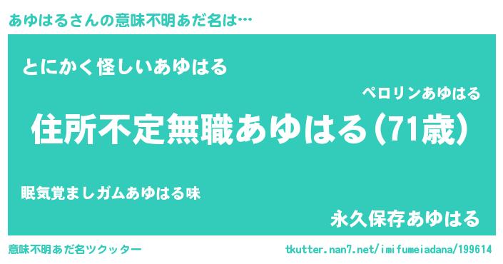 | 欧米人風あだ名 | 『ダレノガレあゆはる』 |