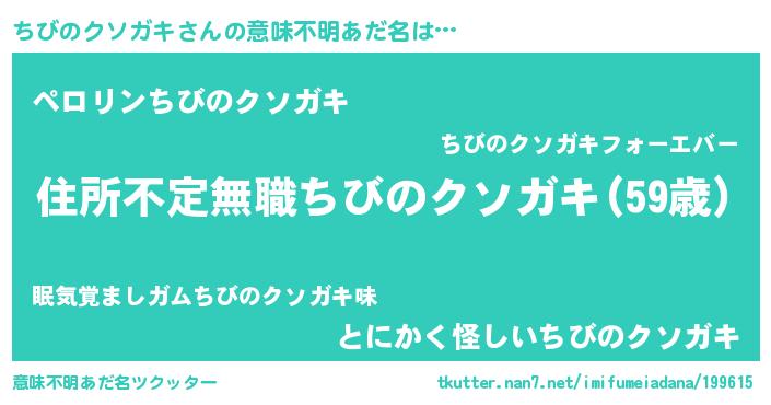 | 男性向けラノベタイトル風あだ名 | 『この素晴らしい世界にちびのクソガキを!』 |