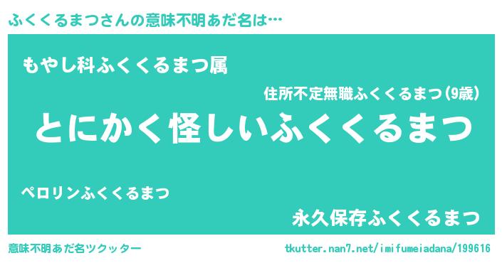 | 男性向けラノベタイトル風あだ名 | 『ふくくるまつの嫁は女の子じゃないと思った?』 |