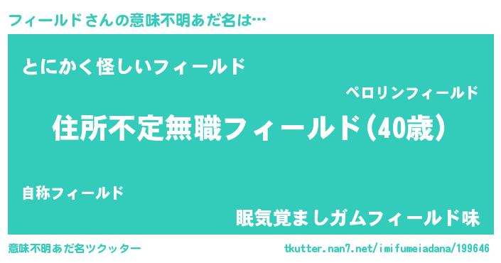 | 男性向けラノベタイトル風あだ名 | 『この素晴らしい世界にフィールドを!』 |