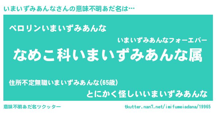 | 女子向けラノベタイトル風あだ名 | 『いまいずみあんなの玉の輿計画!』 |