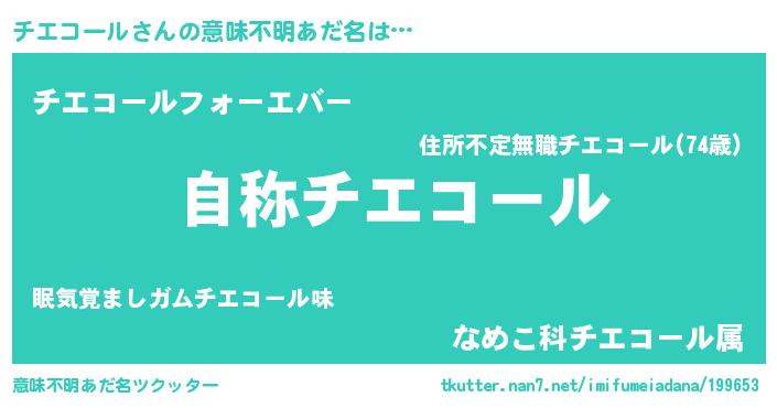 | 肩書あだ名 | 『チエコール総統』『チエコール総理大臣』 |