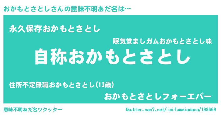 | 女子向けラノベタイトル風あだ名 | 『おかもとさとしアンティーク』 |