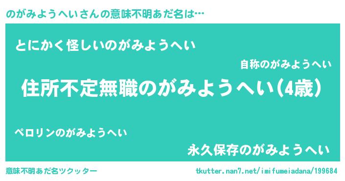 | 男性向けラノベタイトル風あだ名 | 『この素晴らしい世界にのがみようへいを!』 |