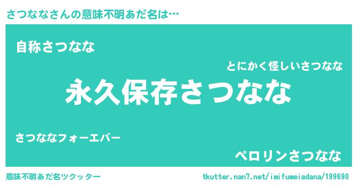 | 欧米人風あだ名 | 『アンジェラ・さつなな』 |