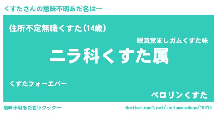 | 男性向けラノベタイトル風あだ名 | 『くすた~年齢イコール彼女いない歴の魔法使い~』 |