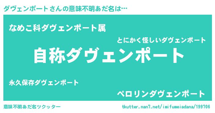 | 男性向けラノベタイトル風あだ名 | 『Re:ダヴェンポートから始める異世界生活』 |