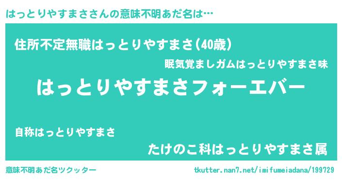 | 欧米人風あだ名 | 『はっとりやすまさ・ステッグマイヤー』 |
