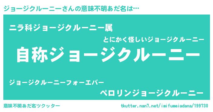 | 男性向けラノベタイトル風あだ名 | 『Re:ジョージクルーニーから始める異世界生活』 |