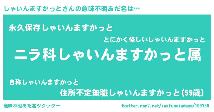 | ヘコむあだ名 | 『しゃいんますかっと(小並感)』『しゃっぺ』 |