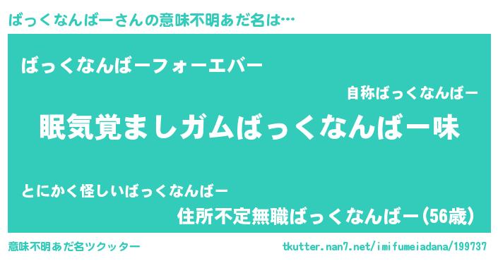 | 欧米人風あだ名 | 『ダニエルばっくなんばー』 |