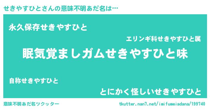 | ヘコむあだ名 | 『せきやすひと(苦笑)』『せき太郎』 |