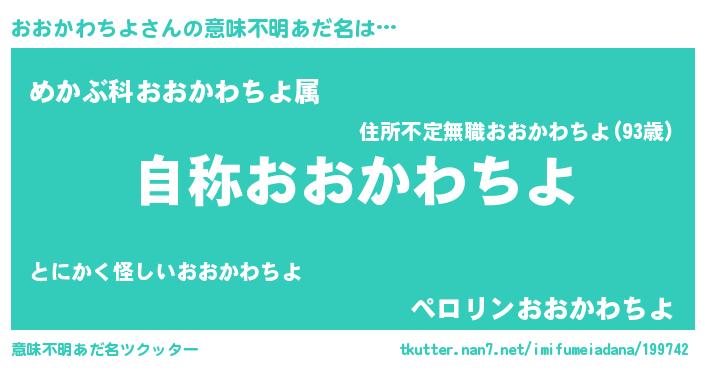 | 女子向けラノベタイトル風あだ名 | 『おおかわちよストレイドッグス』 |