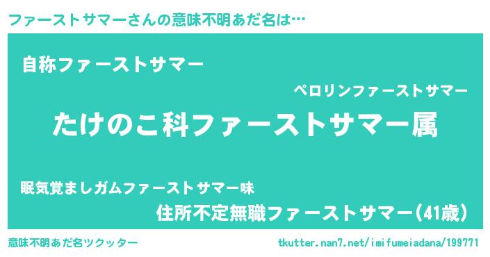 | 胡散臭い通販商品みたいなあだ名 | 『テレビで話題のアガリクス…その名も「ファーストサマー」』 |