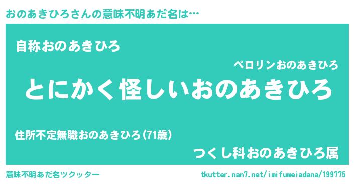 | 男性向けラノベタイトル風あだ名 | 『おのあきひろの嫁は女の子じゃないと思った?』 |