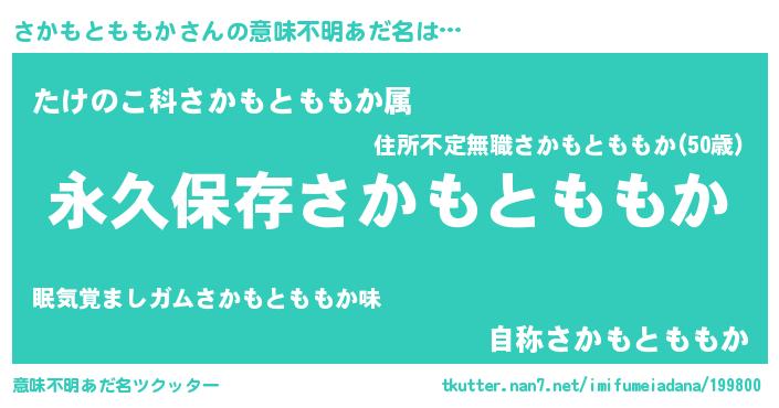 | 胡散臭い通販商品みたいなあだ名 | 『前代未聞の健康食品…その名も「さかもとももか」』 |