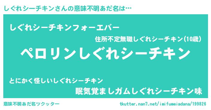 | 胡散臭い通販商品みたいなあだ名 | 『必ず成功する霊験あらたかなお札…その名も「しぐれシーチキン」』 |