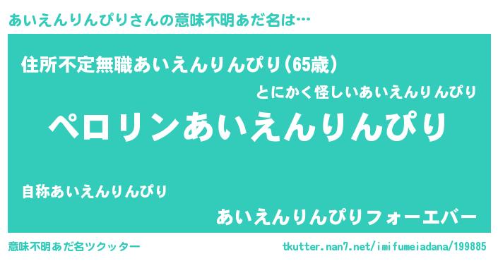 | 欧米人風あだ名 | 『マイケルあいえんりんぴり』 |
