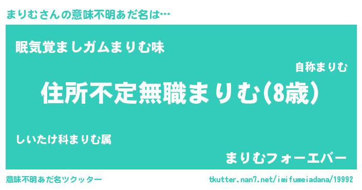 | 女子向けラノベタイトル風あだ名 | 『悪役まりむに転生したようですが、知った事ではありません』 |