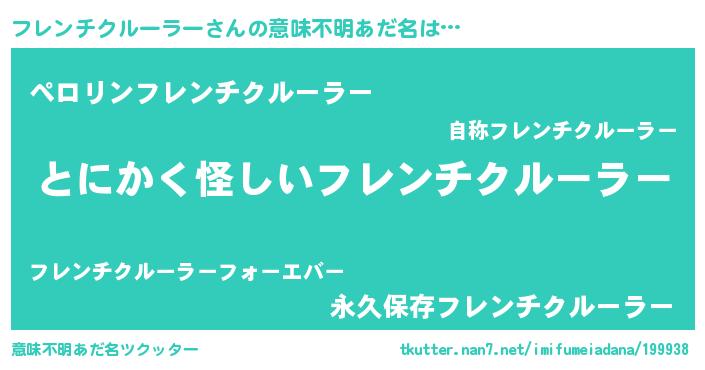 | 自動車の名前っぽいあだ名 | 『フント』『フェフーレ』『デミフ』 |