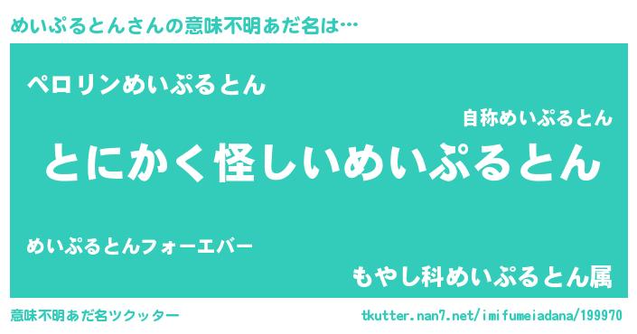 | 男性向けラノベタイトル風あだ名 | 『めいぷるとんの嫁は女の子じゃないと思った?』 |