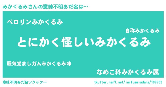 男性向けラノベタイトル風あだ名 | 『ダンジョンにみかくるみを求めるのは間違っているだろうか』 |