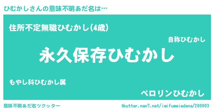 | 伝説のあだ名 | 『古文書に記された暗殺者ひむかし』 |