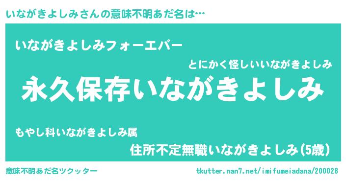 | 男性向けラノベタイトル風あだ名 | 『いながきよしみという概念が存在しない退屈な世界 』 |