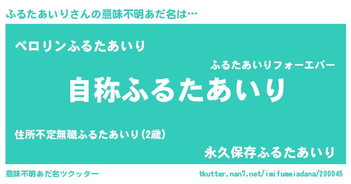 | 男性向けラノベタイトル風あだ名 | 『Re:ふるたあいりから始める異世界生活』 |