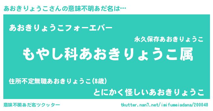 | 肩書あだ名 | 『あおきりょうこ上級大将』 |