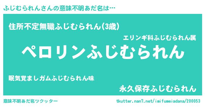| ヘコむあだ名 | 『ふじにー』『ふじむられん(小並感)』 |