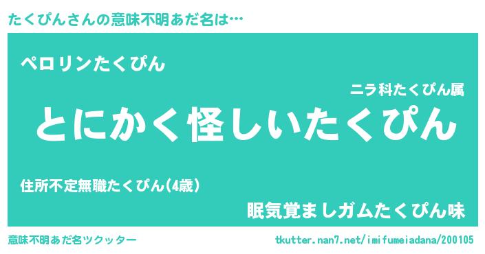 | 料理風あだ名 | 『たくぴんの豆乳スープ』 |