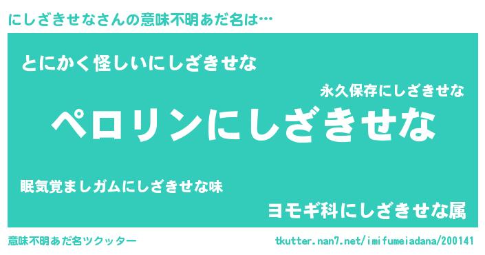 | 胡散臭い通販商品みたいなあだ名 | 『モテモテ間違いなし霊験あらたかなお札…その名も「にしざきせな」』 |