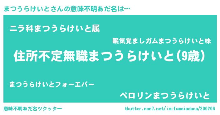 | 肩書あだ名 | 『まつうらけいと教官』 |