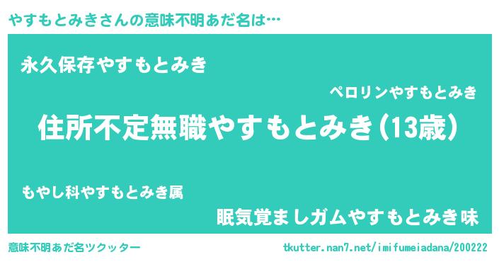 | ヒーロー風カッコイイあだ名 | 『仮面ヤスダー』『ネオヤスモトミキ』 |